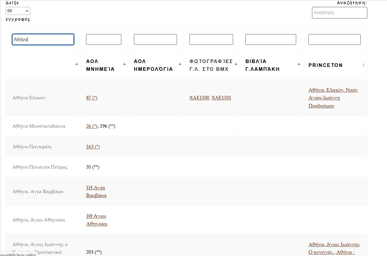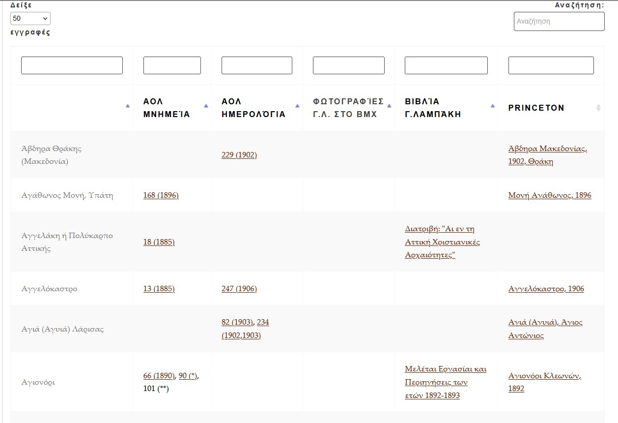 Ακόμα μια χρήσιμη λίστα είναι η λίστα αναζητησης ανά περιοχή, όπου μπορείτε έυκολα να κάνετε αναζήτηση μιας περιοχής και να σας φέρει όλα τα αποτελέσματα μαζί. Σε αυτή την σελίδα μπορείτε να κάνετε αναζήτηση σε κάθε στήλη της λίστας.
